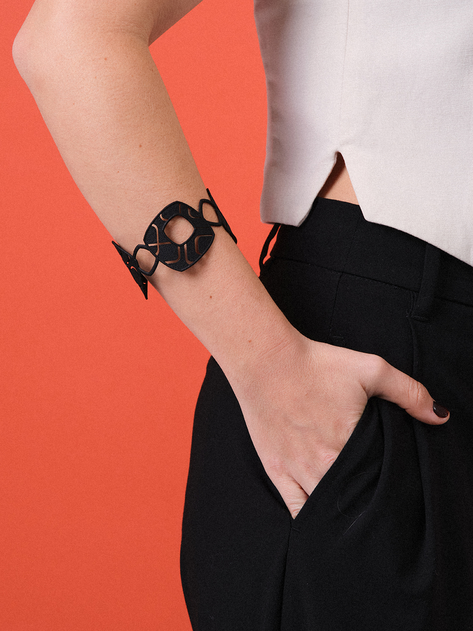 3D βραχιόλι με αυστηρές γραμμές και μοντέρνα αισθητική, εμπνευσμένο από την ισορροπία των σχημάτων.