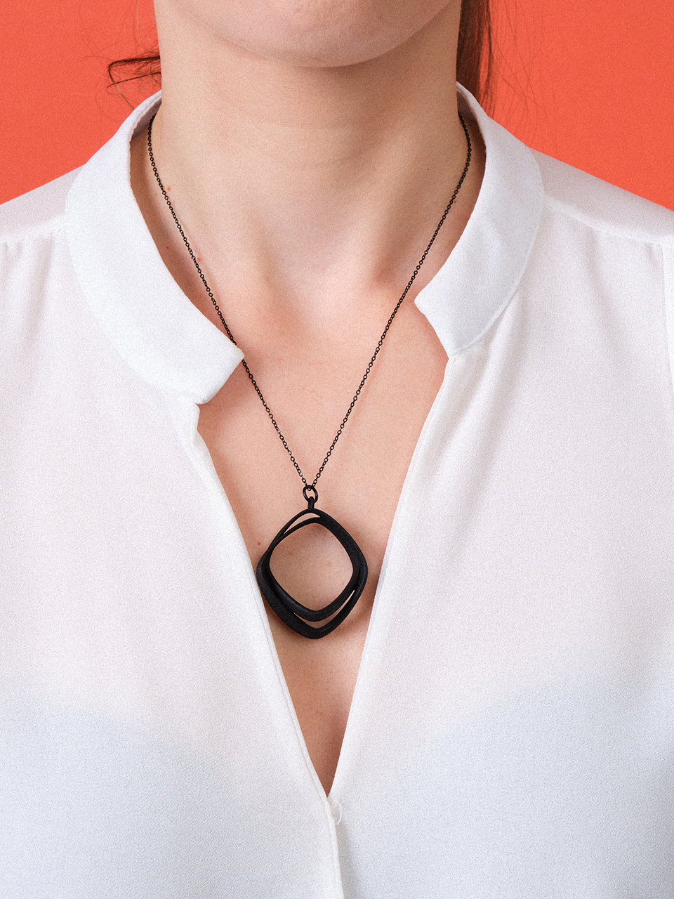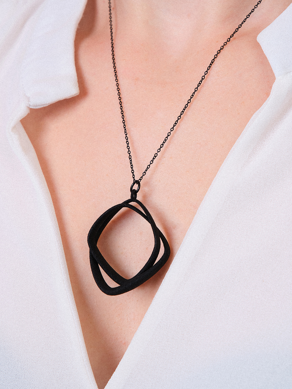 3D κολιέ με διπλή γεωμετρική φόρμα και σύγχρονη αισθητική, που αναδεικνύει τη λεπτομέρεια μέσα από την ισορροπία.