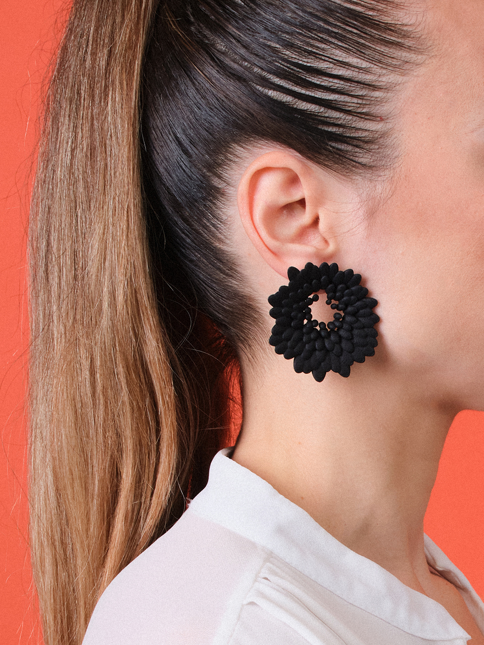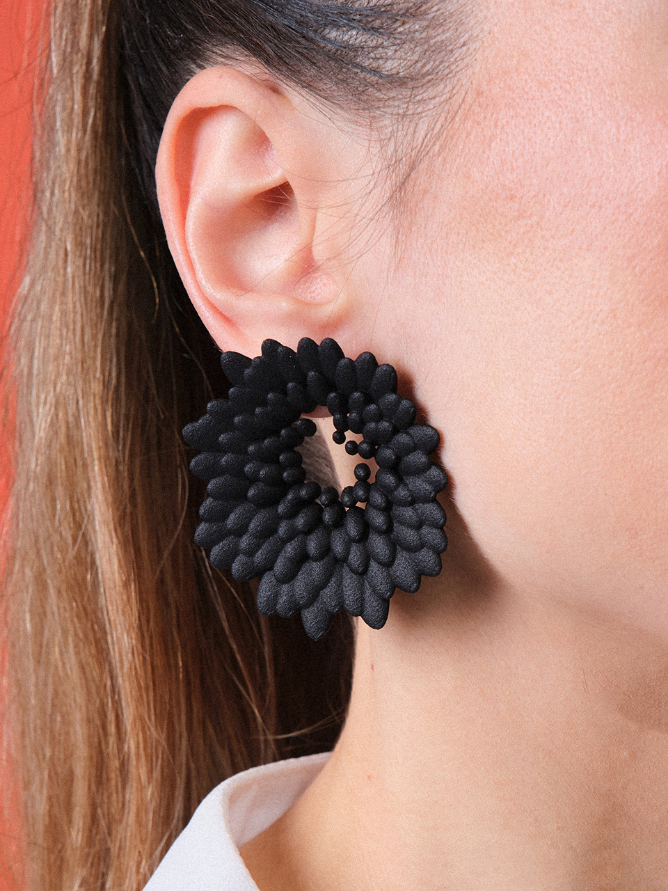 3D σκουλαρίκια με κυκλική, μοντέρνα φόρμα, εμπνευσμένα από την αρμονική κίνηση των πλανητών.